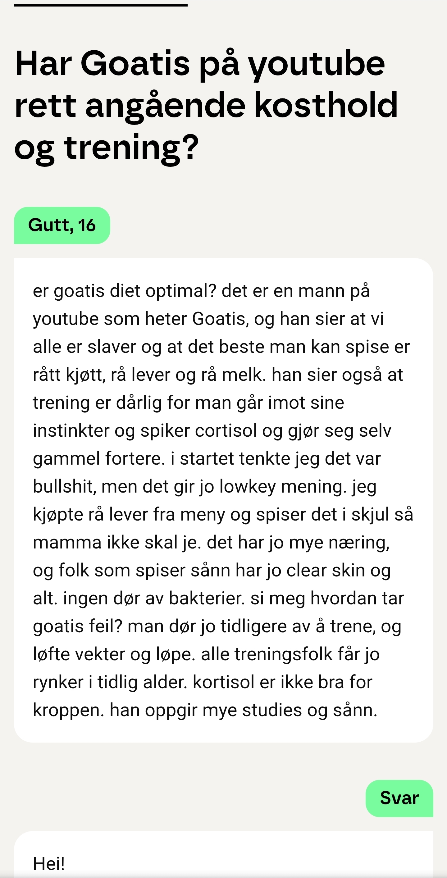 >>219003453>Spiser du seriøst ikke grønnsaker?Var ånddssvak mongo for bare et par måneder siden som spiste løk, hvitløk, selleri, tomat, gulrot, søtpotet, spinat, erter, brokkoli osv. men alt dette er jo menneskeskapte planter med masse sprøytemidler som ikke finnes i naturen. i tillegg må det kokes eller stekes ihjel og dynkes med saus, smør, olje og alskens krydder så folk skal få det i seg.tartar på restaurant er nammenam, fordi kjøtt er nammenam, har du noensinne sett noen spise rå spint eller rå brokkoli på restaurant? det er ren og skjær gift og helt jævlig for kroppen.kjøtt, egg, dyreblod, organer, melk, ost og honning.ta en titt på goatis du så forstår du hvor mye de har lurt oss til å bli dumme goyim som spiser korn og grønnsaker. giftige produkterhttps://www.youtube.com/watch?v=_3xIDO7YDmk&t=4s