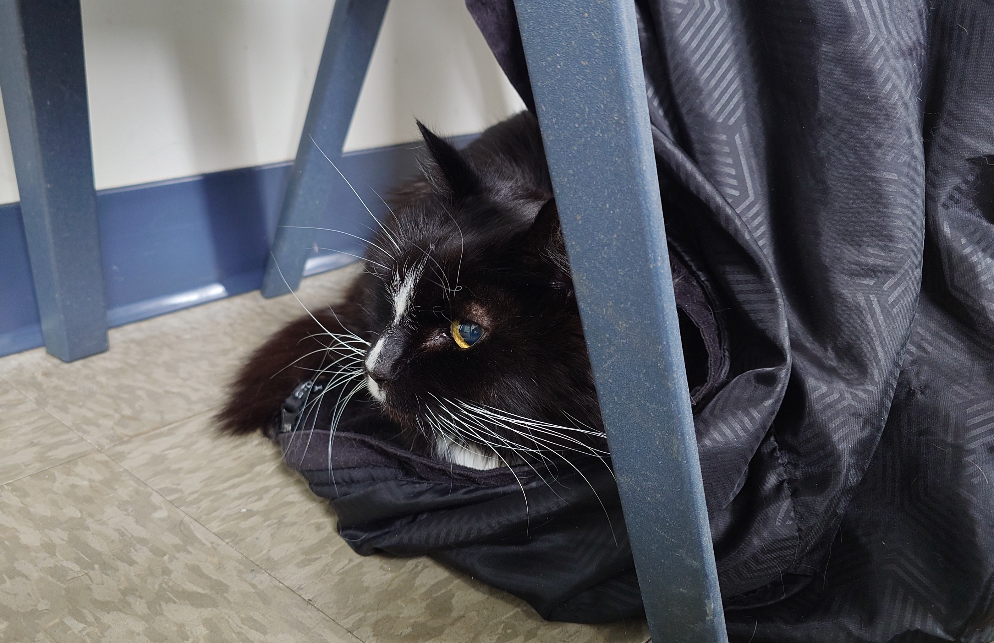 Old guy hiding in my jacket at the vet