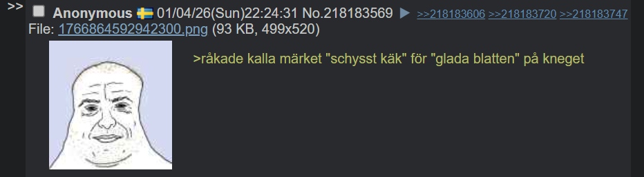 >>219106011vi är i sverige och här pratar man svenska>>219106119det är epstin och inget annat