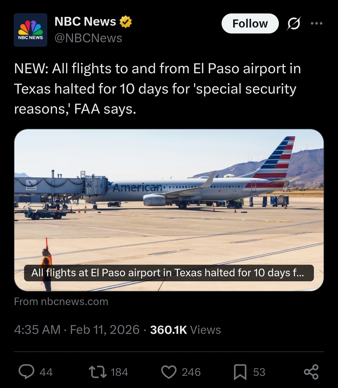 just heard from my brother that a UFO has crashed near El Paso airport and that’s why they have shut down the airport near by so they can clean the scene without anyone in a plane seeing it from above