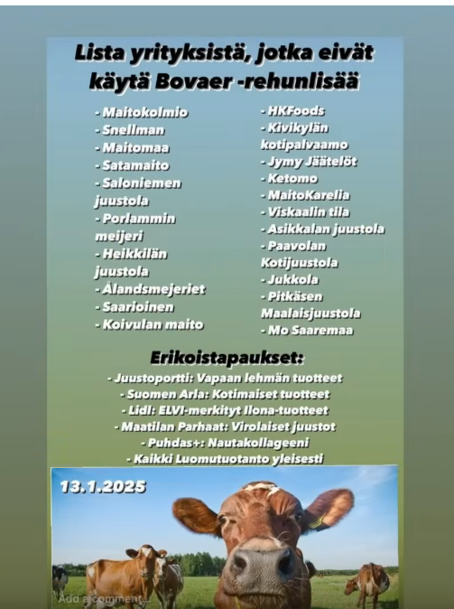 >Valio keskeyttää Bovaer-rehulisäaineen kokeilun Suomessaja tän piti olla joku salaliittoteoria