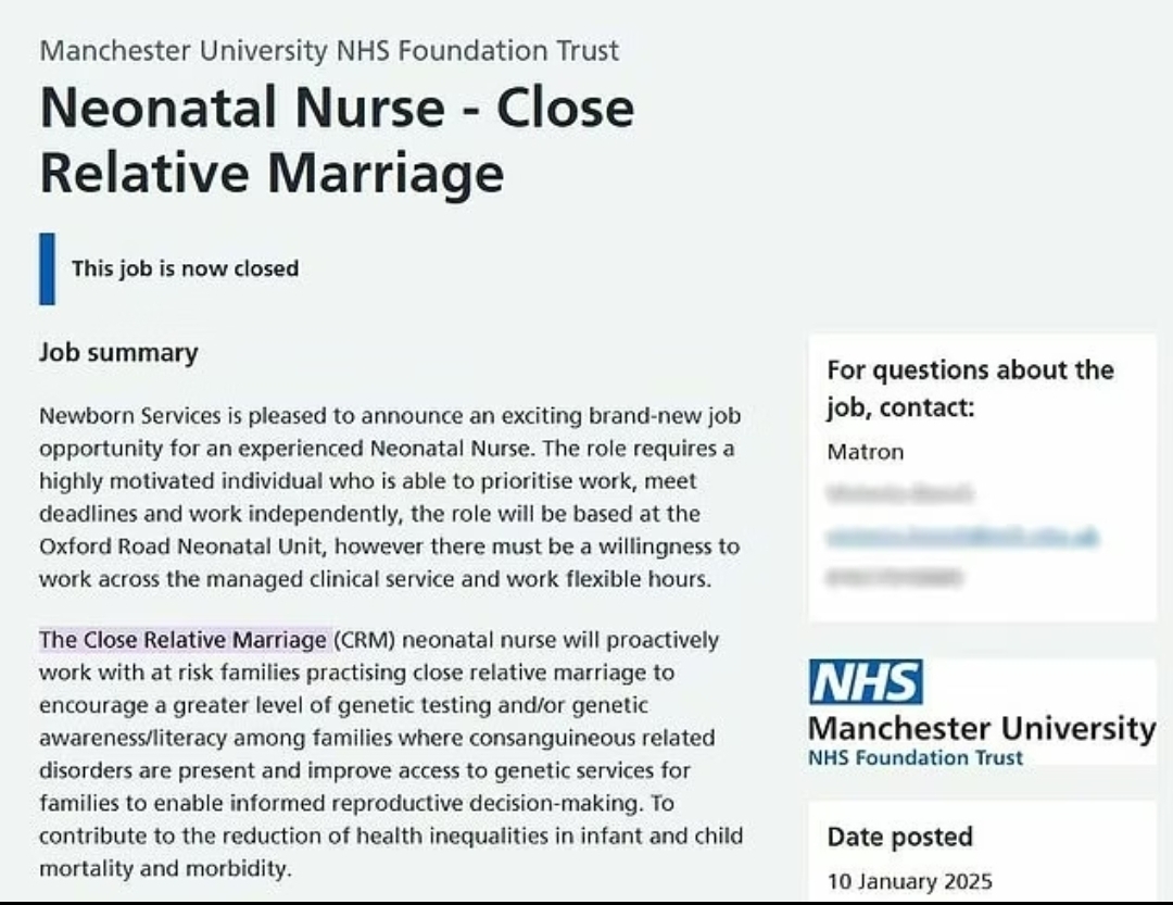 >>219175546https://www.dailymail.co.uk/news/article-15542941/Manchester-NHS-Trust-advertises-job-neonatal-nurse-help-families-practice-close-relative-marriage.html