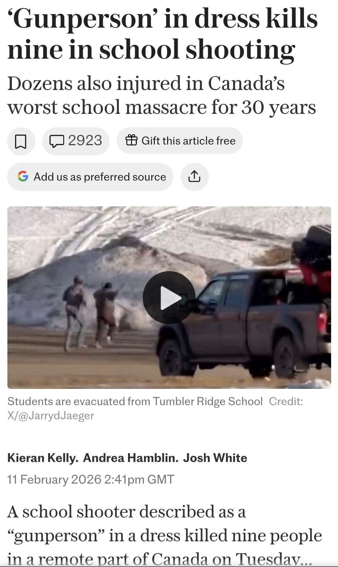 Reckon they need to make a Canadian version of adolescence and show it in their schools. Would stop the shootings