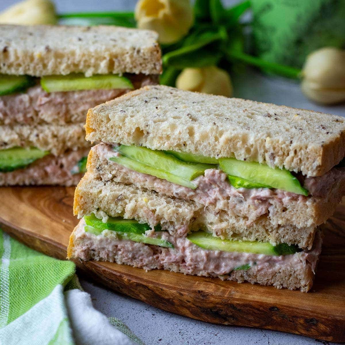 eating a tuna and cucumber sandwich