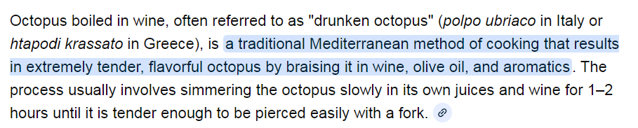 >First boiled in vinegar and salt and after grilling slathered in olive oil, lemon salt/black pep and parsleyDelicious, I want to try cooking it in red wine. Octopus>most fish when done correctly >>219243318>I'm half, my mother is GreekThere's a second Balkan war joke in there somewhere