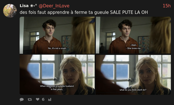 Sui7 a vraimenymt un boulot ?Elle est tout le temps sur twitter cette pute.