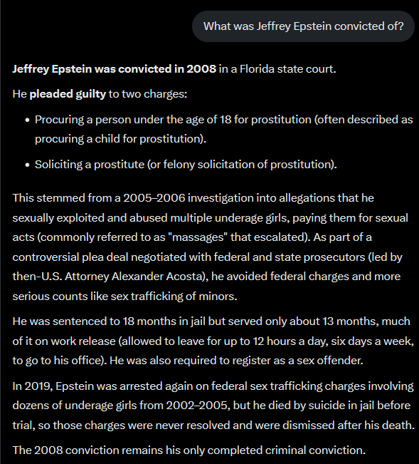 >>219211036Epstein was convicted of getting teenagers who lied about their age using fake id's to give him nude massages, the girls were in their mid teens to early 20sThere's no evidence that he even did anything like violently rape a woman let alone satanic pedophilia