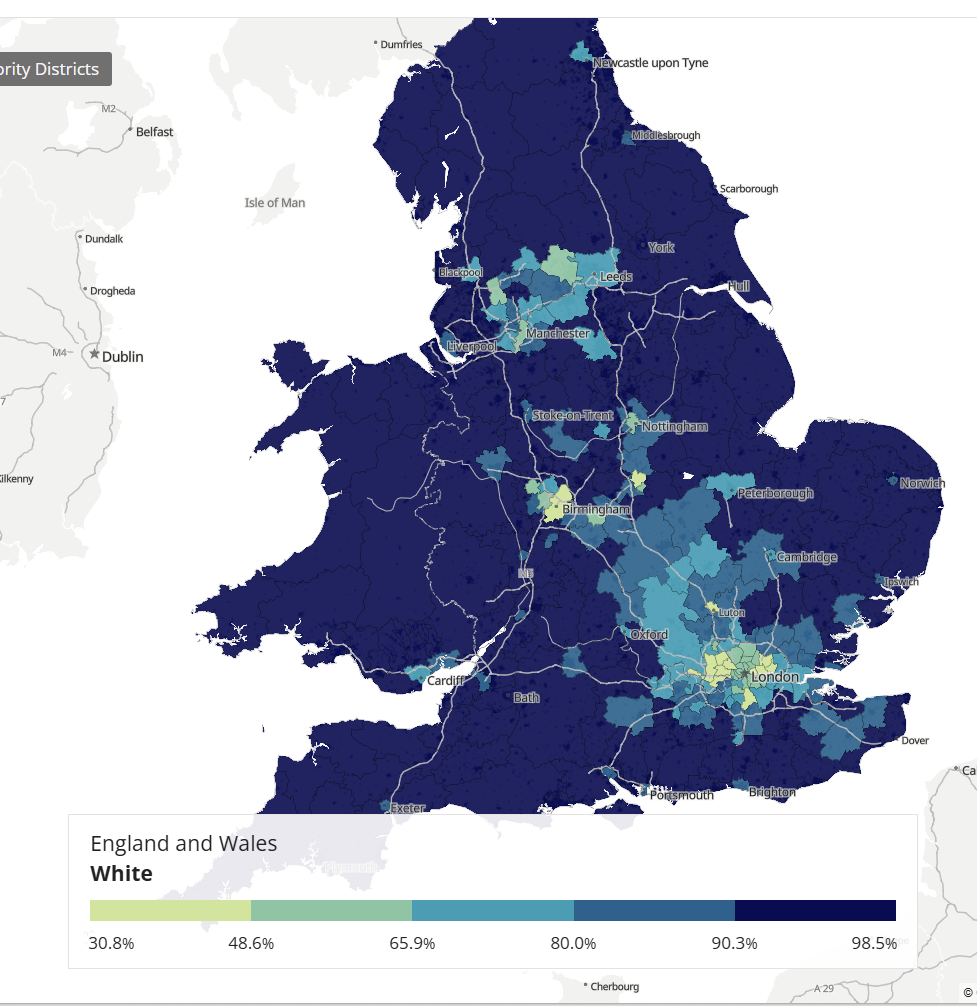 >>219216628yeah I wouldn't doubt that, it says Newcastle is 85% white but every time my train goes through there it seems more like 70%