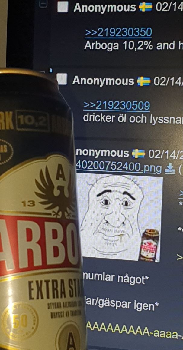 >>219230509dricker öl och lyssnar på musik, gömmer lite att tråden finns