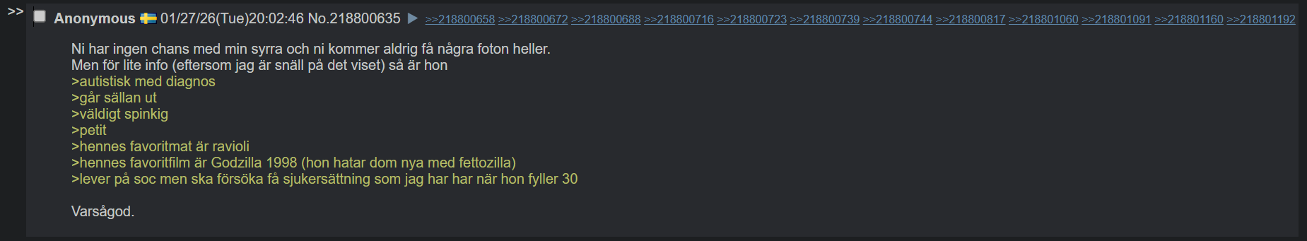 >>219243439Det är bara bögbrevande i andra trådar