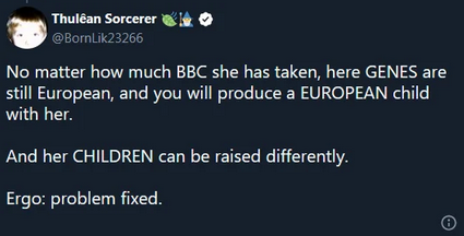 >>219257675he is explaining to his son it doesnt matter how many BBCs shes taken because her children can be european, true life long lessons