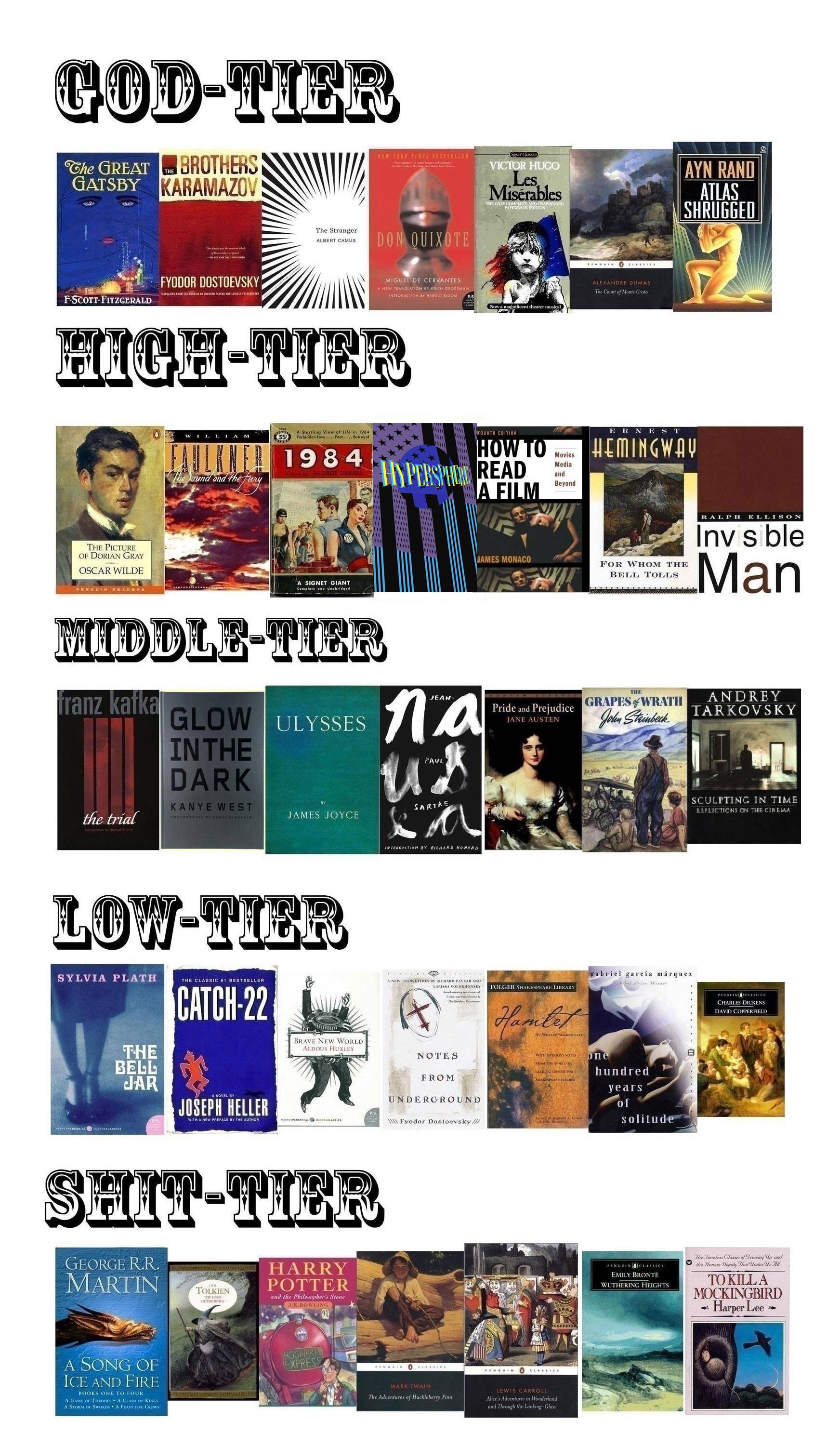 >>219252145reddit is right when it says /lit/ tries too hard to seem elevated and smart even if most of this chart is bait >>219252177boring ahh unc books asoiaf is better