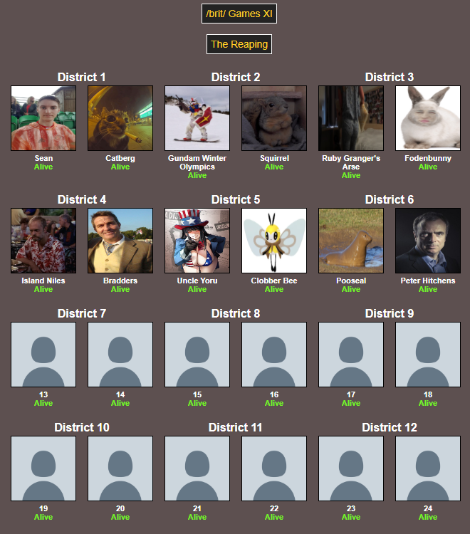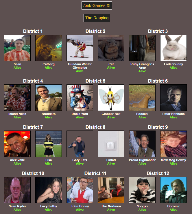 TRIBUTES HAVE BEEN PICKED AND SHIPPED OFF THE ARENAThe 11th edition of the /brit/ games shall begin shortly