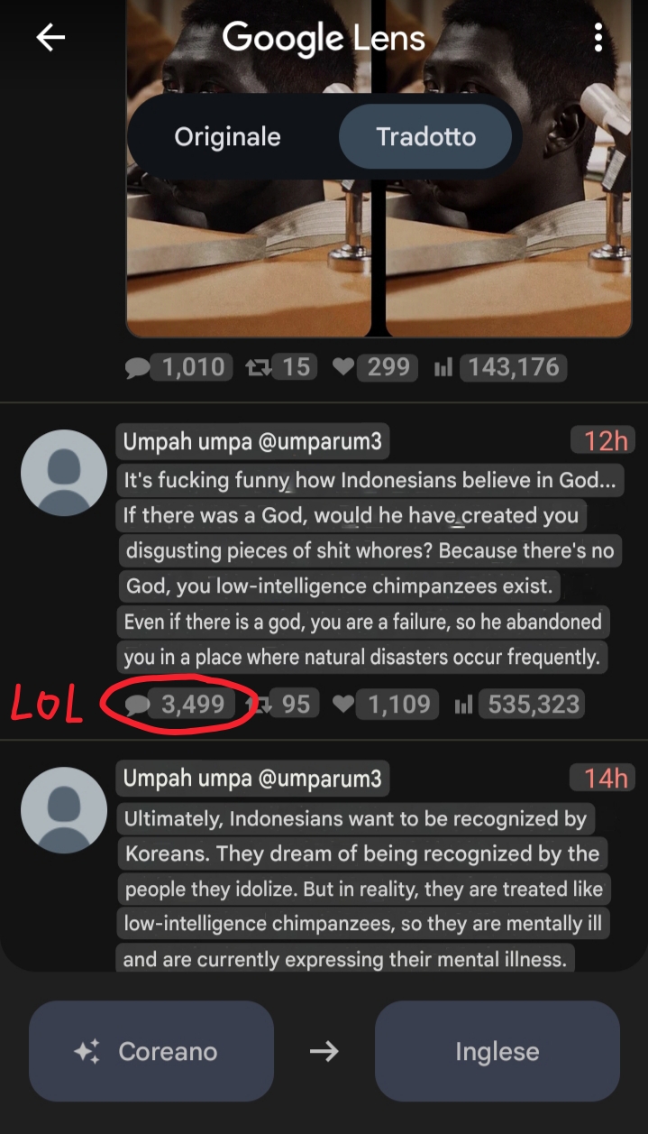 >>219267962some korean chud on twitter insulted malaysians at a kpop concert and that started a twitter war