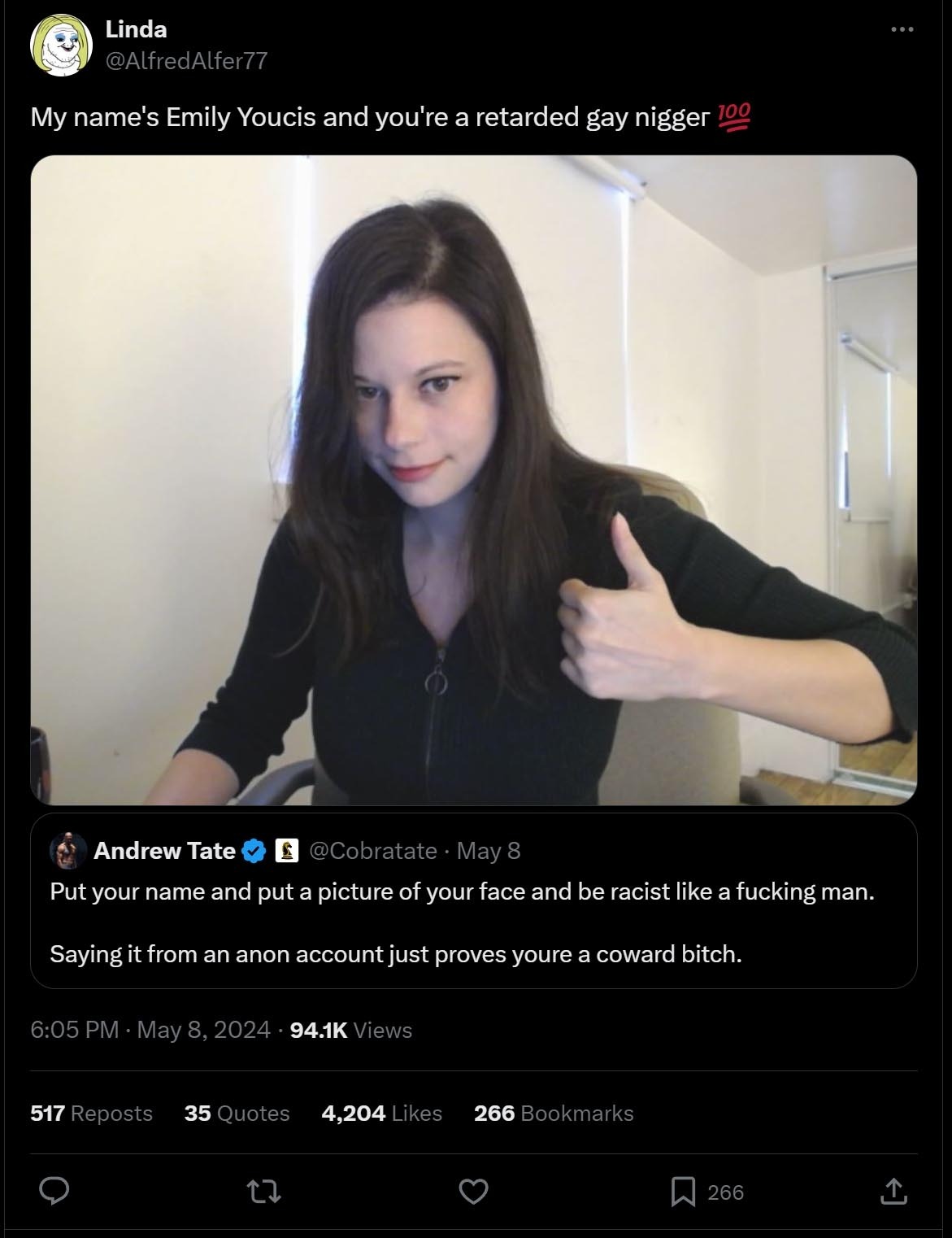 >>219273777>women getting raped by their own sons, recorded pissing, shamed into american plastic surgery>wahhh i can't watch pornNo wonder you're women hate you, you treat them like THAT and expect them to just silently take it, no wonder 30-50% of them marry white men as soon as they step into the west.