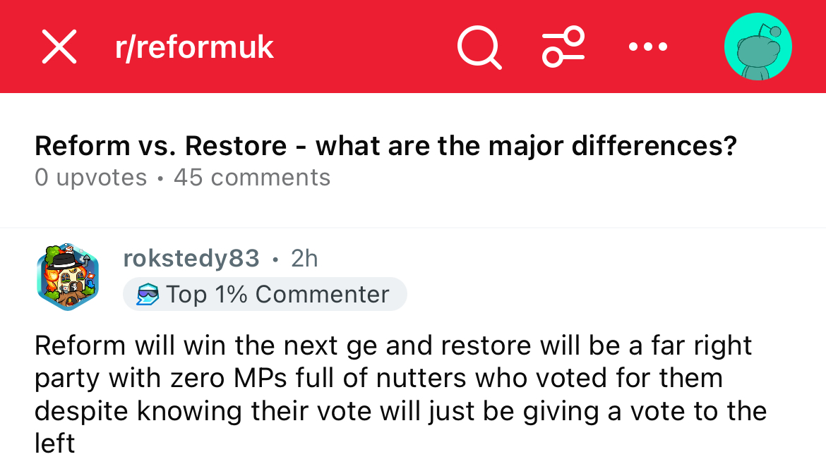 rupert Lowe wants to abolish the monarchy so that’s good enough for me. Got my vote lad