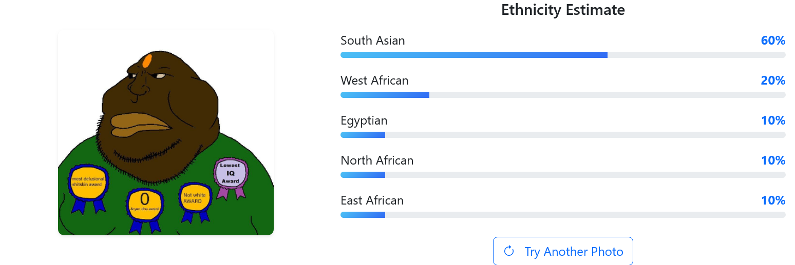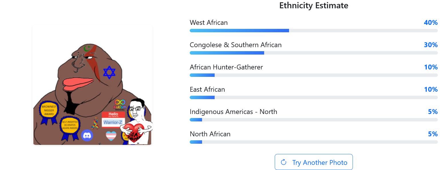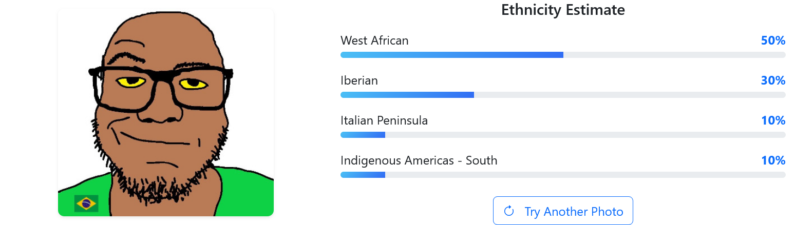>>219289351>75% West AfricanImagine the size of his BBC, completely annihilates the self esteem of his fellow countrymen.