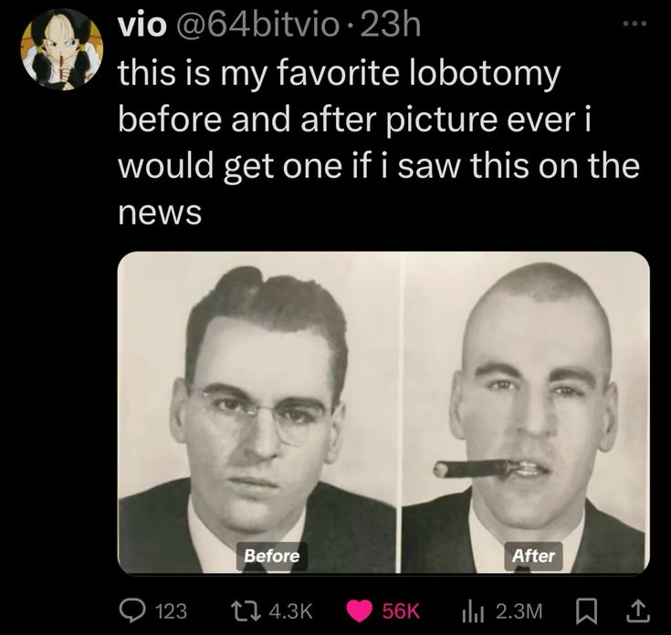 Frankly if you look at the state of gen Z, you realize lobotomies weren't a bad idea, they were simply introduced too early.