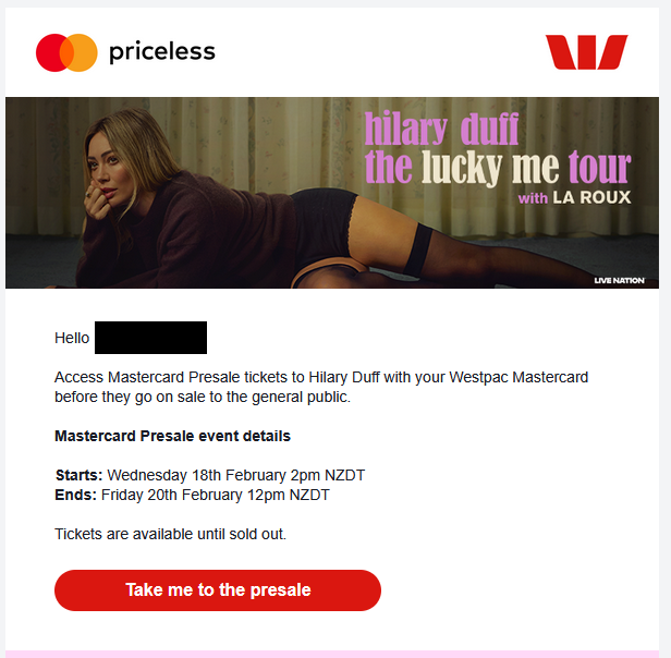 my bank just sent me an email asking if I want to buy Hillary Duff tickets