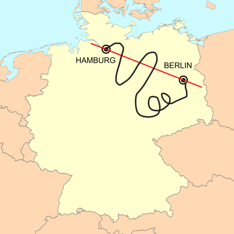 Germany's two largest cities are located on a straight line. Are Germans the most efficient race?