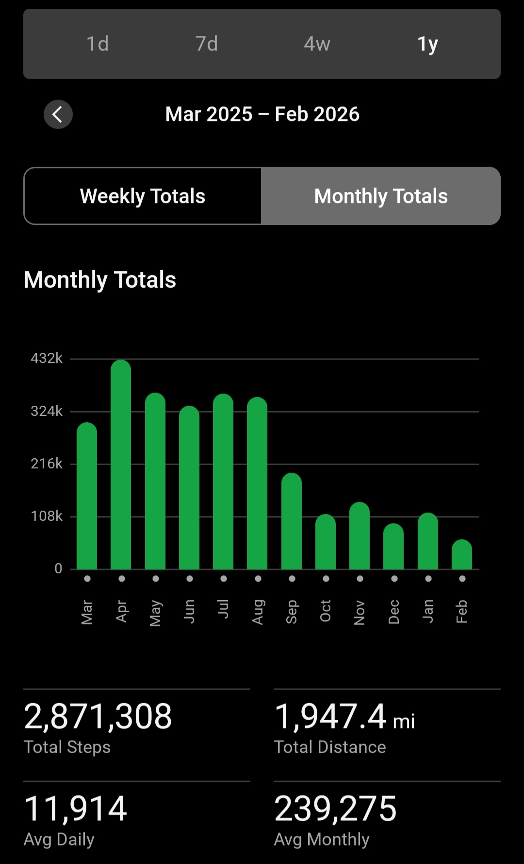 My high score was back in November of 2025 which was 332 thousands steps.