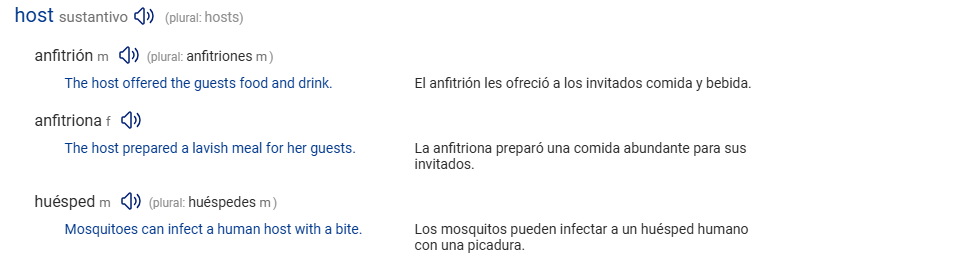 por que host se traduce como huesped e invitado?