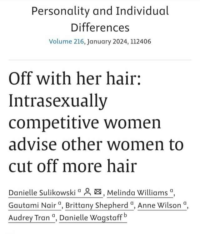 >>219332853>"Bro just shave it, hair doesn't matter!"Never listen to baldies. They do the same thing women do where they convince others to cut off their hair. We're all in competition with one another.
