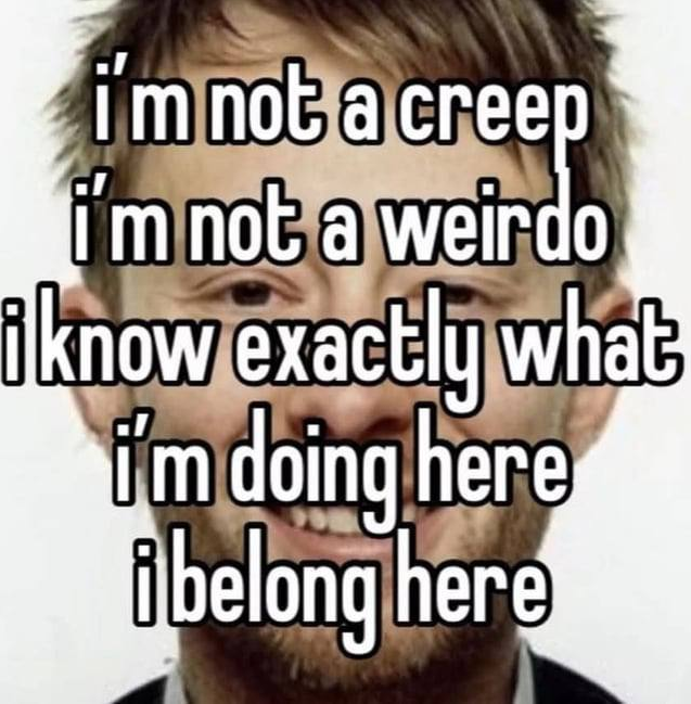 I'm not a creep I'm not a weirdoWhat I'm doing hereI belong with her