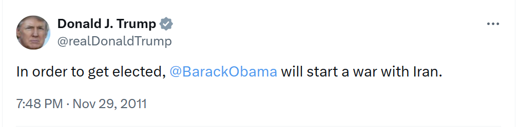 He'll be back for the next round of Iran bombings certainly