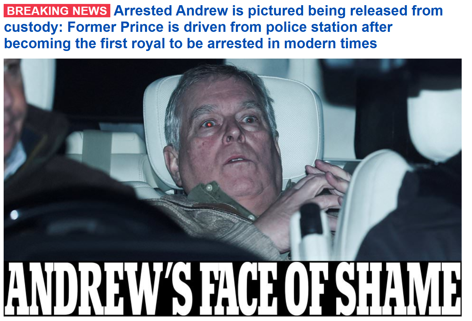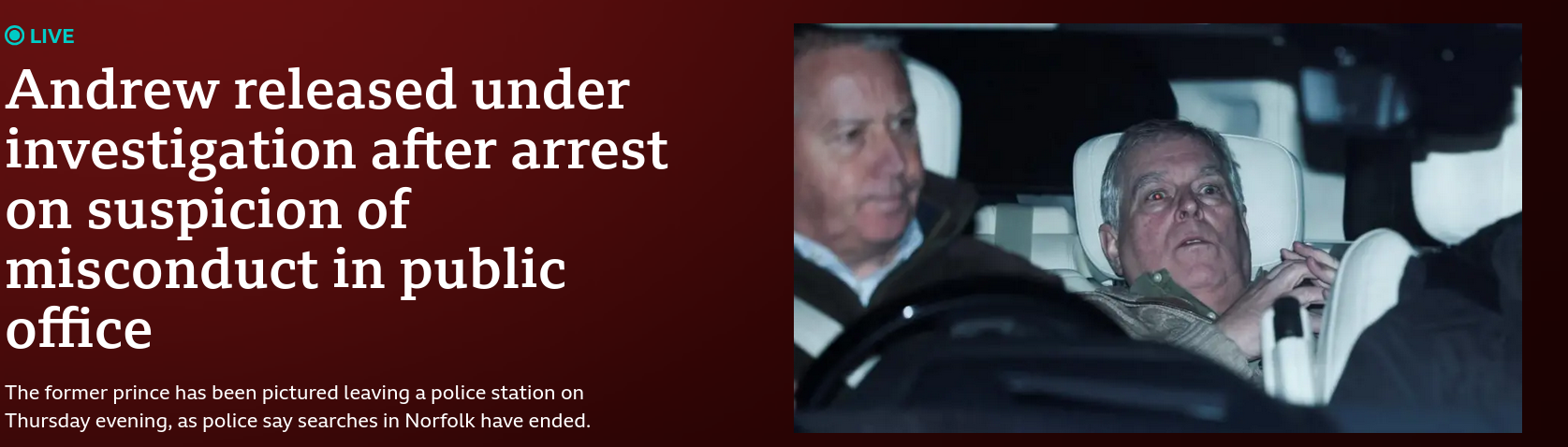 Prince Andrew has been accused of having sex with a woman who was 17 and working illegally as a prostitute, however there is no evidence to suggest he knew she was 17 and he has not be accused of paying her (its legal to shag a 17 year old but not to pay them for sex). Todays arrest was for misconduct in a public office relating to his time as a trade envoy and the evidence comes from leaked emails to Epstein.