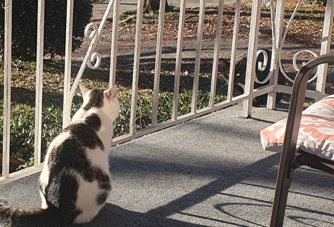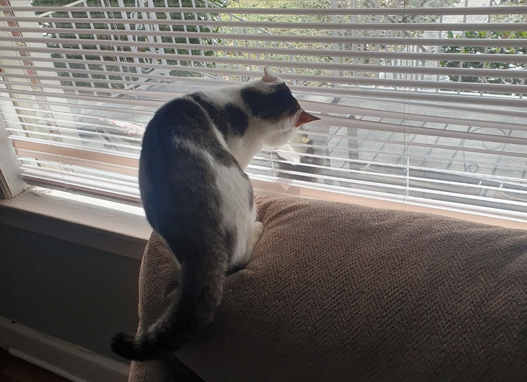 >>219385893Yeah it's absolutely gorgeous out today. I wanna let my cat go outside too. But he doesn't listen when I tell him to come back inside. And there's a stray cat who watches the house all day and all night and he will attack my cat out of jealousy. Every time I let him out on the balcony with me, within 5 mins Mr. Stray cat will show up and try bullying my pet. Pic related. He sits there all day. Or he will walk around to the other windows and state at the living room. He REALLY hates my cat and wants to replace him.