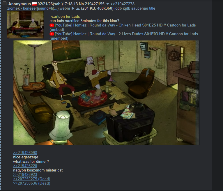 >cartoon for Ladscan lads sacrifice 3minutes for this kino?https://www.youtube.com/watch?v=TO1mIkLQo2Ehttps://www.youtube.com/watch?v=eEiTjswPLGM>>219426098nice egeszegewhat was for dinner?>>219426220nagyon koszonom mister cat>>219426923>>207250275>>207250636