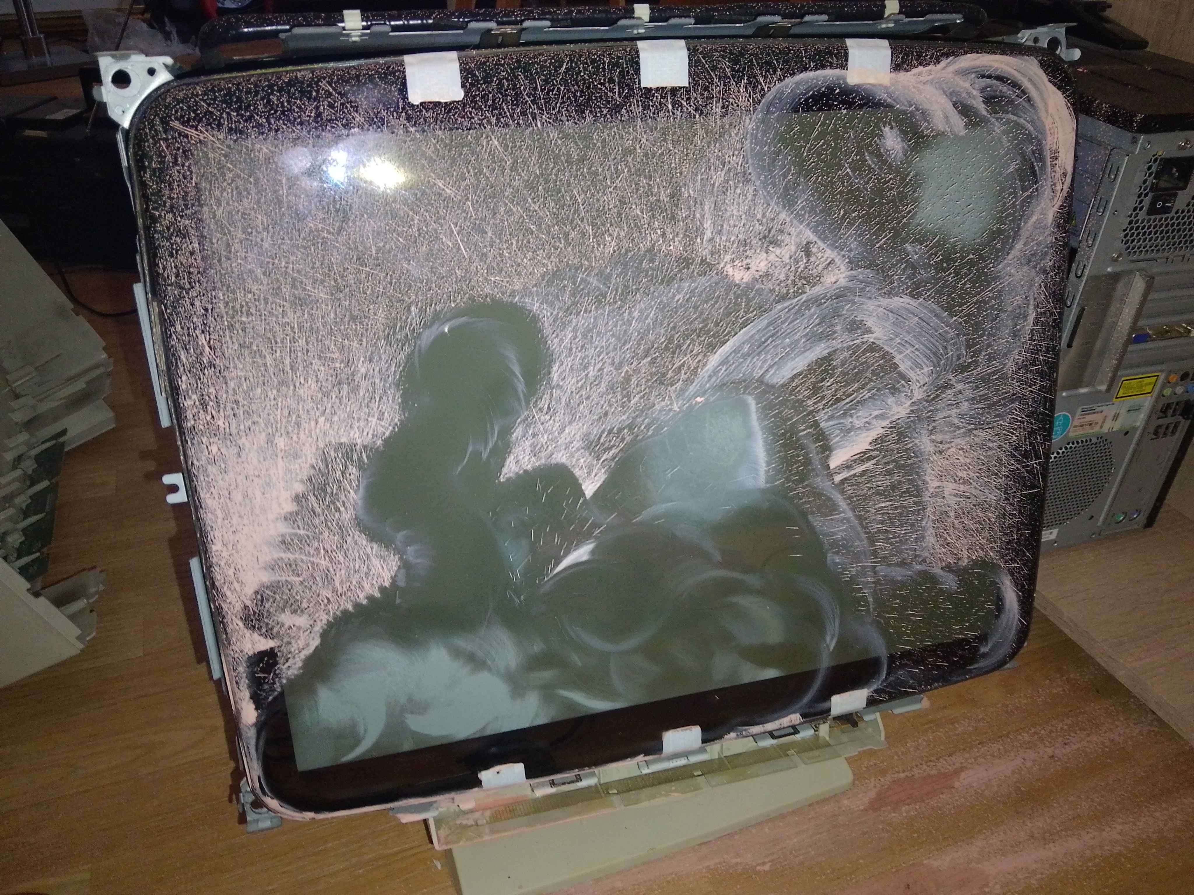 >>219409896Glaspolieren ist auch kein ZuckerschleckenIch habe Muskelkater das glaubst du nicht, Mein Hals ist rau von dem Staub obwohl ich eine echte Vollgesicht NATO Maske anhatteUnd das Ergebnis ist nicht zufriedenstellenden, habe viele Regenbogenstellen in dem Glas was für einen Monitor natürlich nicht gehtAber wenn der mal fertig ist dann wird sich alles gelohnt haben, so ein geiles TeilIch hüpfe vor Freude wen ich daran denkeDieses Teil hatte ich damals aus Aachen mit dem Zug nach hause geschleppt, das war schon krass, das Ding wiegt fast 40kg
