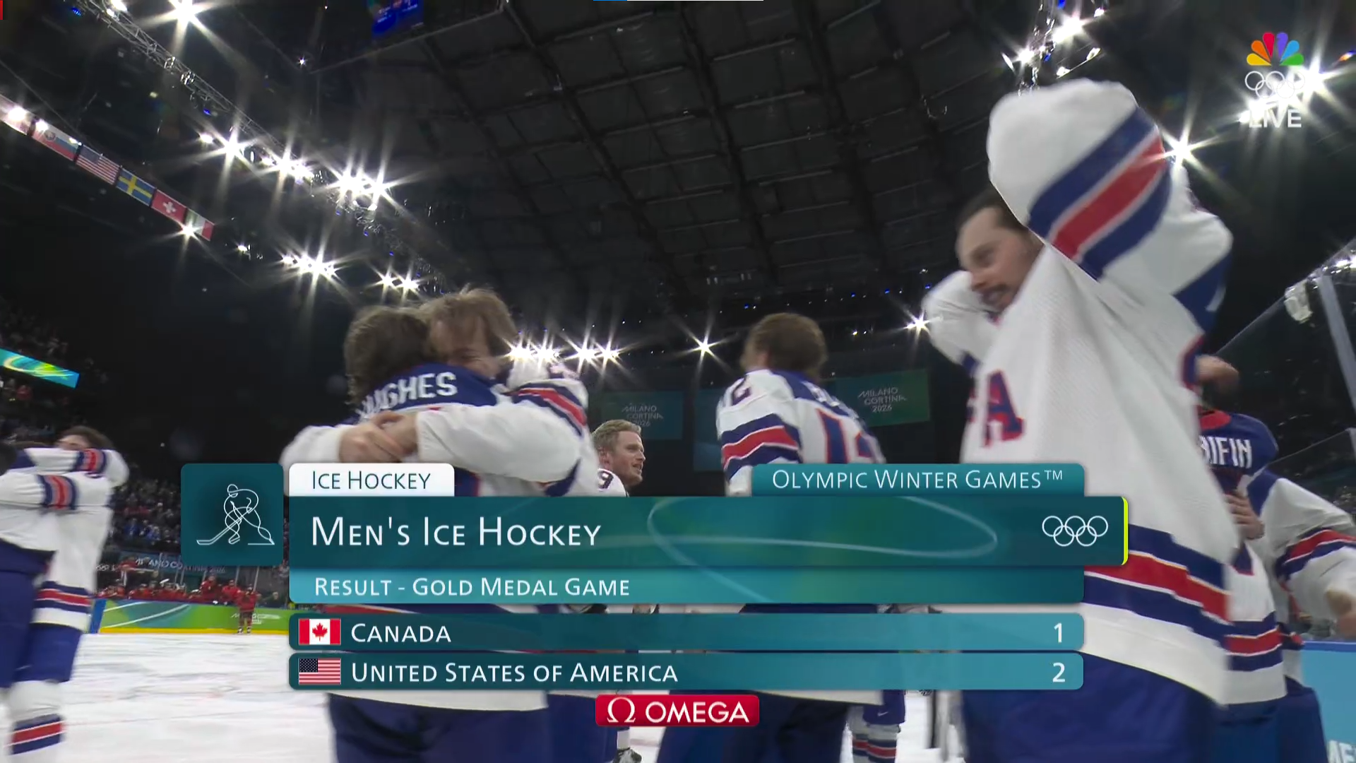 USA is currently beating canada in olympic hockey for the gold medal