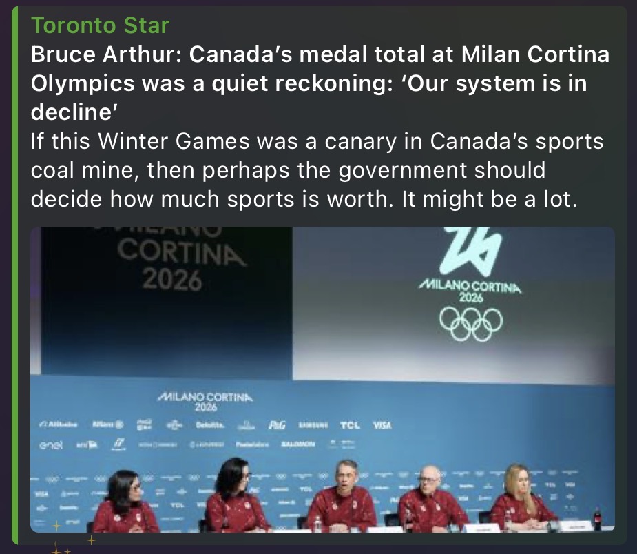 The boomers finally noticed that Canada has gone to shit because we did terribly at the Olympics