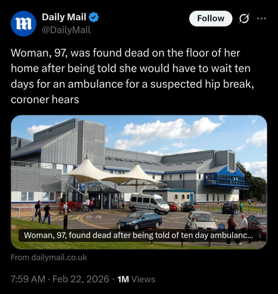 >>219467284Why wasnt she in a care home? at that age its just foolish.