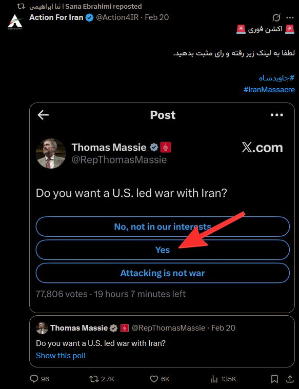 >we need immediate action!!!! this xitter poll will le save iRan!!!!