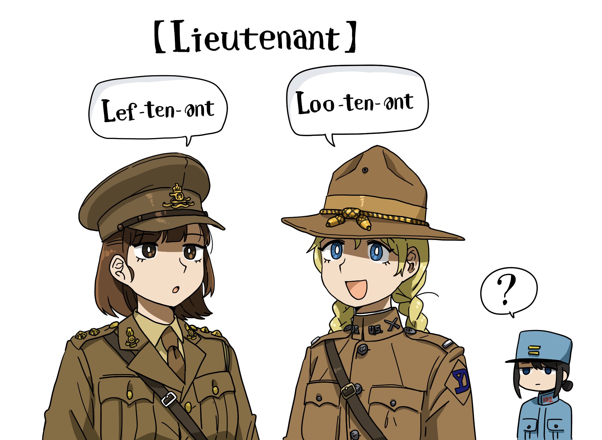 >>219486398I was talking about Canadian/British English, Americans say lieutenant. We say Left-tenant. Both are not correct in french anyways which is the point of the original image.