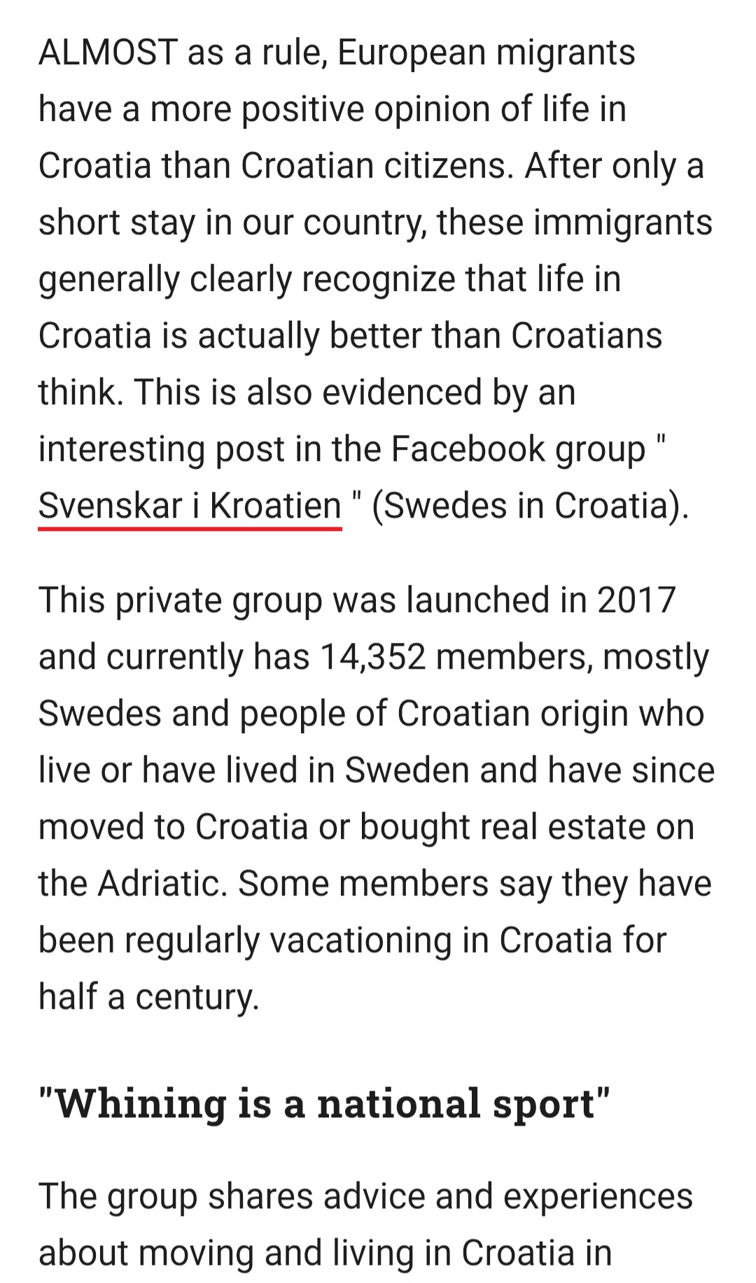 >>219501553Swedes think life in Croatia is good and that Croats complain too much