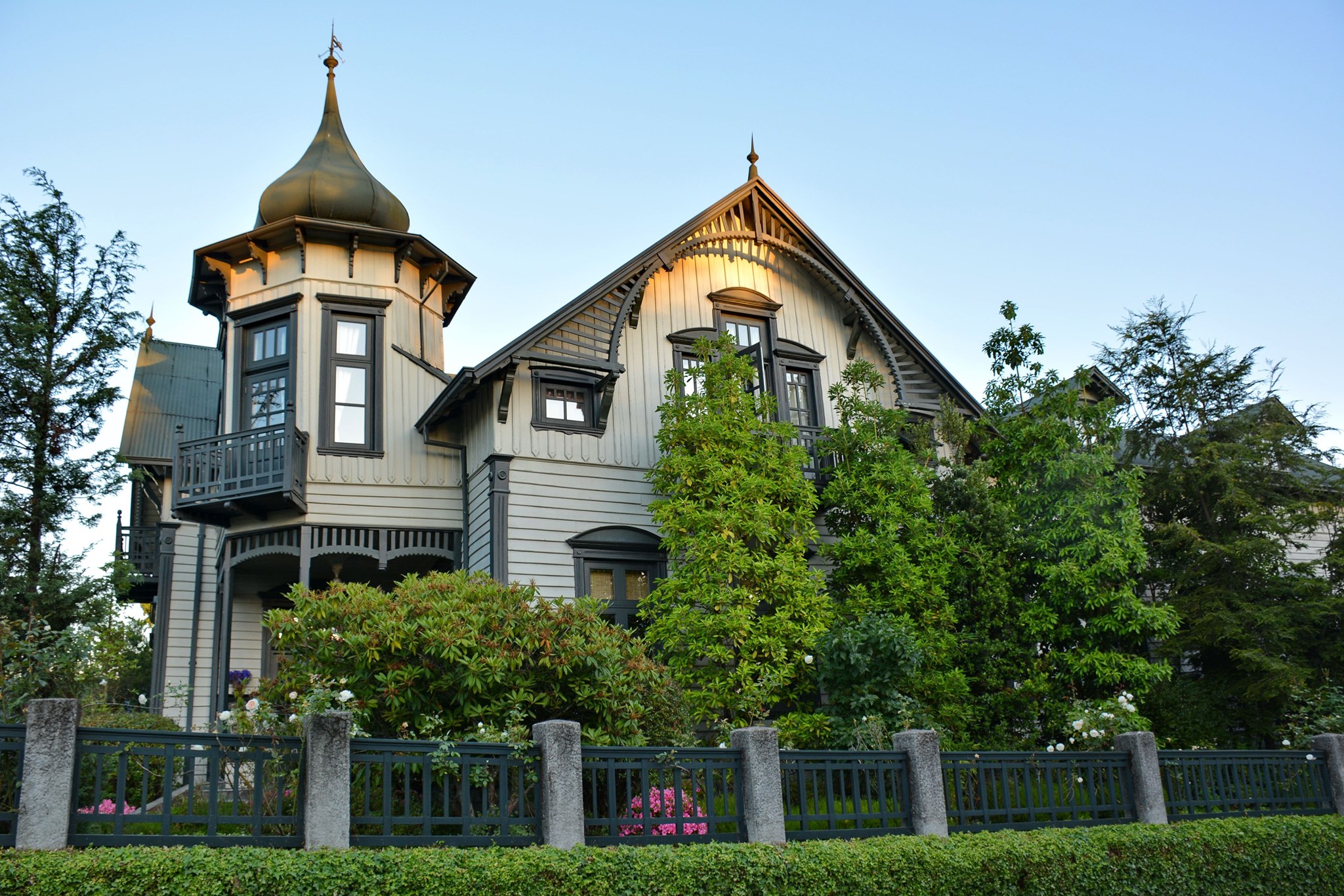 The blue & black roof is an interesting combination