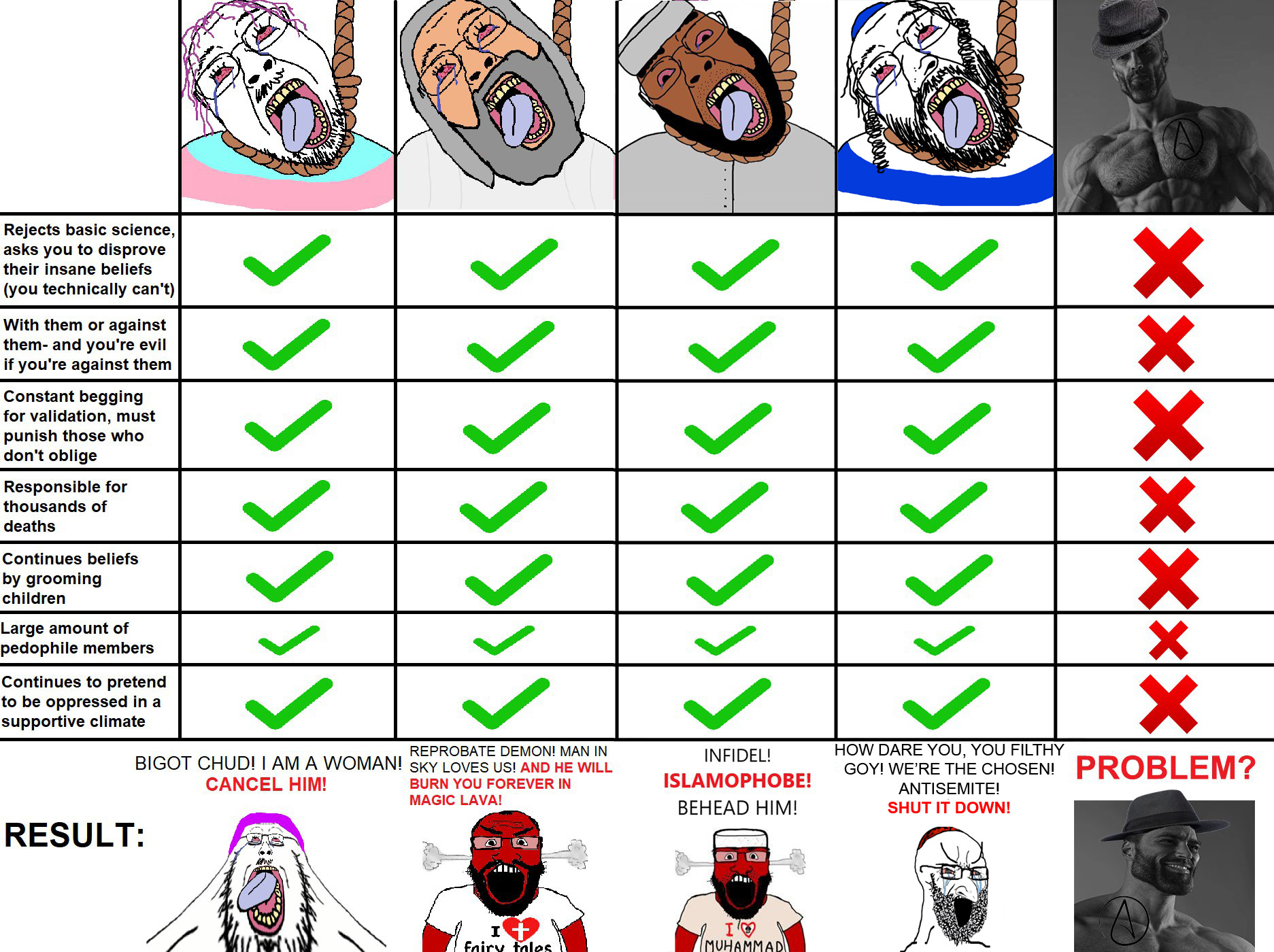 >>219556737>>219555999>>219555973>>219551443"Eclesiastes é o melhor livro da Bíblia, de longe.Na verdade, é o único livro da Bíblia que vale alguma coisa.Ele se baseia em quatro premissas:+Morreu, acabou. Não existe vida após a morte.+Envelhecer é horrível.+A vida é cheia de sofrimentos.+Os vivos invejam os mortos e, ainda mais, aqueles que não nasceram. Ou seja, seria melhor não ter nascido nesse mundo.E isso é engraçado, porque, em outra parte da Bíblia, YHWH diz que os seus servos deveriam crescer e se multiplicar.Mas aí chegamos em Eclesiastes e o livro é claro em afirmar que seria melhor não ter nascido.Ou seja, mais uma contradição entre tantas nesse compilado de livros chamado de Bíblia."