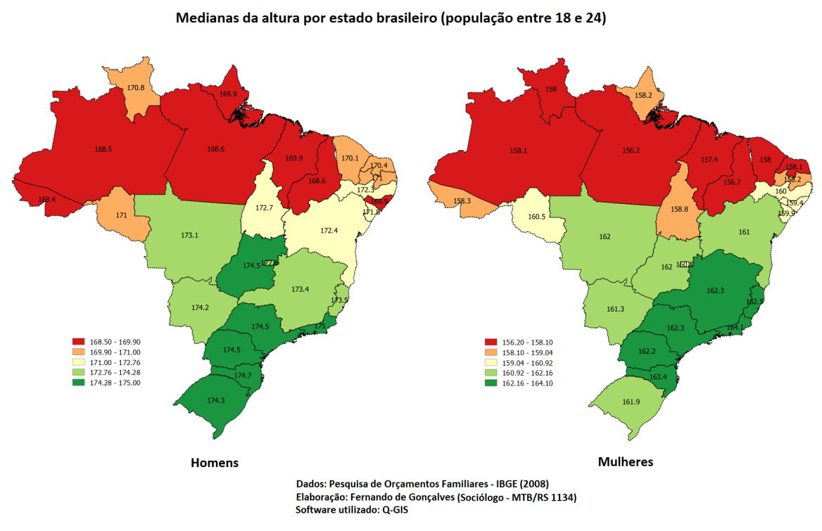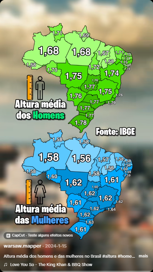 Encontrei um mapa da altura média dos brasileiros mais atualizada. Se a esquerda é tão boa porque os merdestinos são tão baixinhos? Me surpreende eles serem uns anões mesmo com toda a cesta básica que eles recebem do governo mula por fazer corpo mole