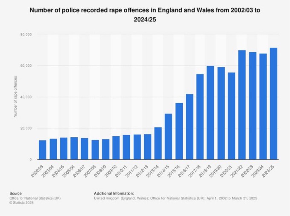 The Rape of EnglandThe amount of rape in England has quadrupled in about 10 years. Now the highest in the western world, about 100 times worse per 100,000 people than PolandWhat changed?