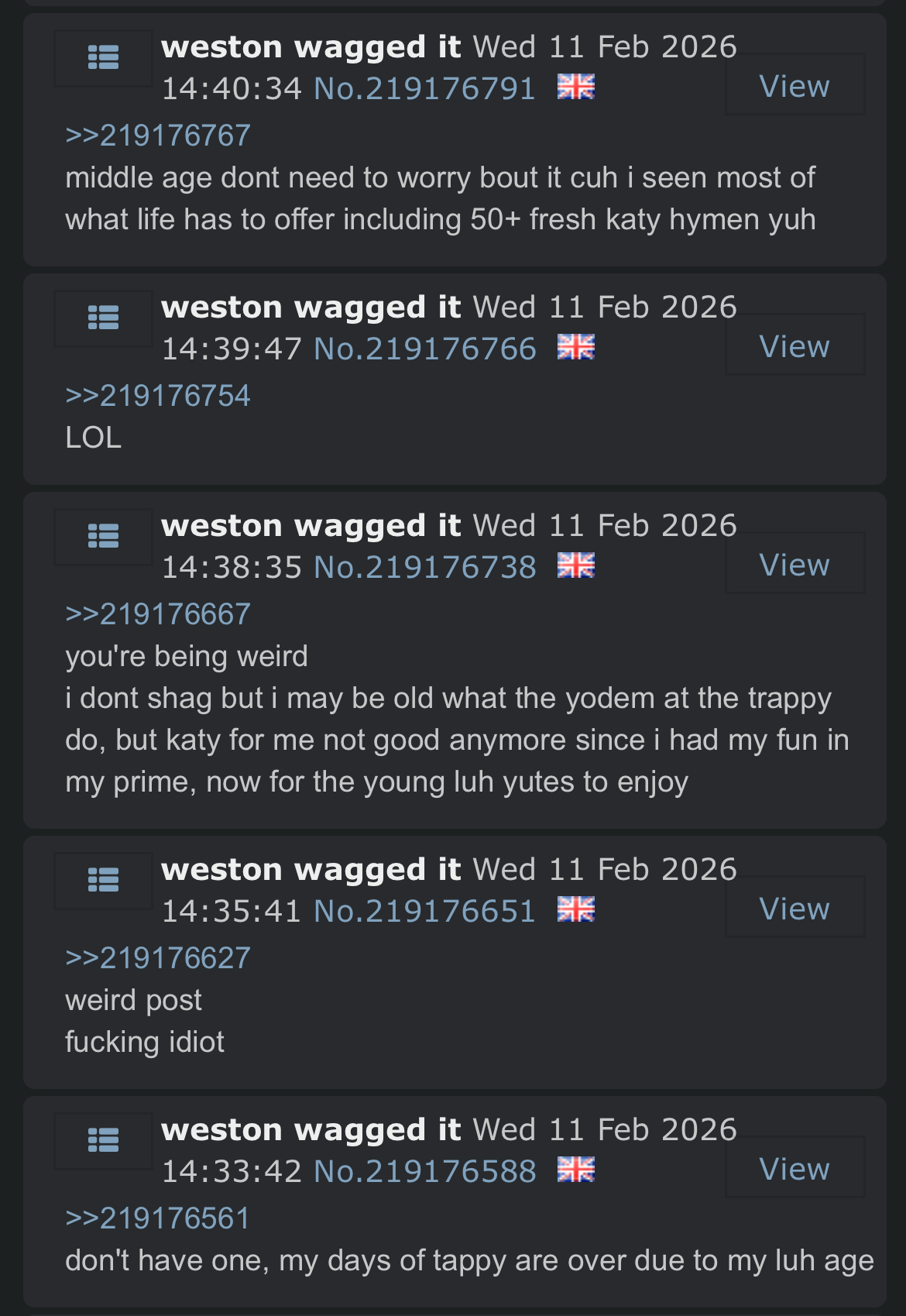 >>219552756all on the /brit/ discord lad, we're still getting around 4 posts a minute there