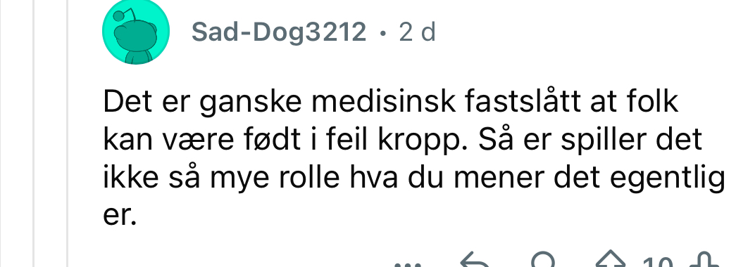 >>219570123>han er sur fordi folk ikke anser en sjingsjonger og to halv sjingsjongere som norskeAltså dette er jo sol transer som blir sure fordi folk ikke anser de som kvinner