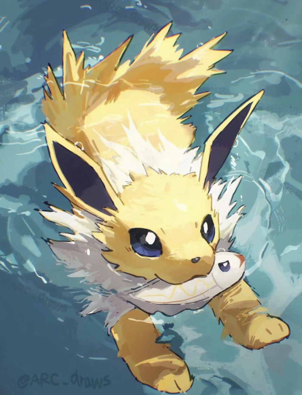 Hier ist ein Jolteon am Schwimmen. Protipp: Nicht gleichzeitig schwimmen gehen
