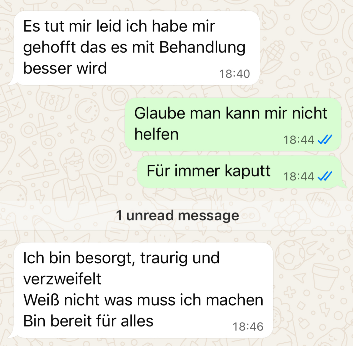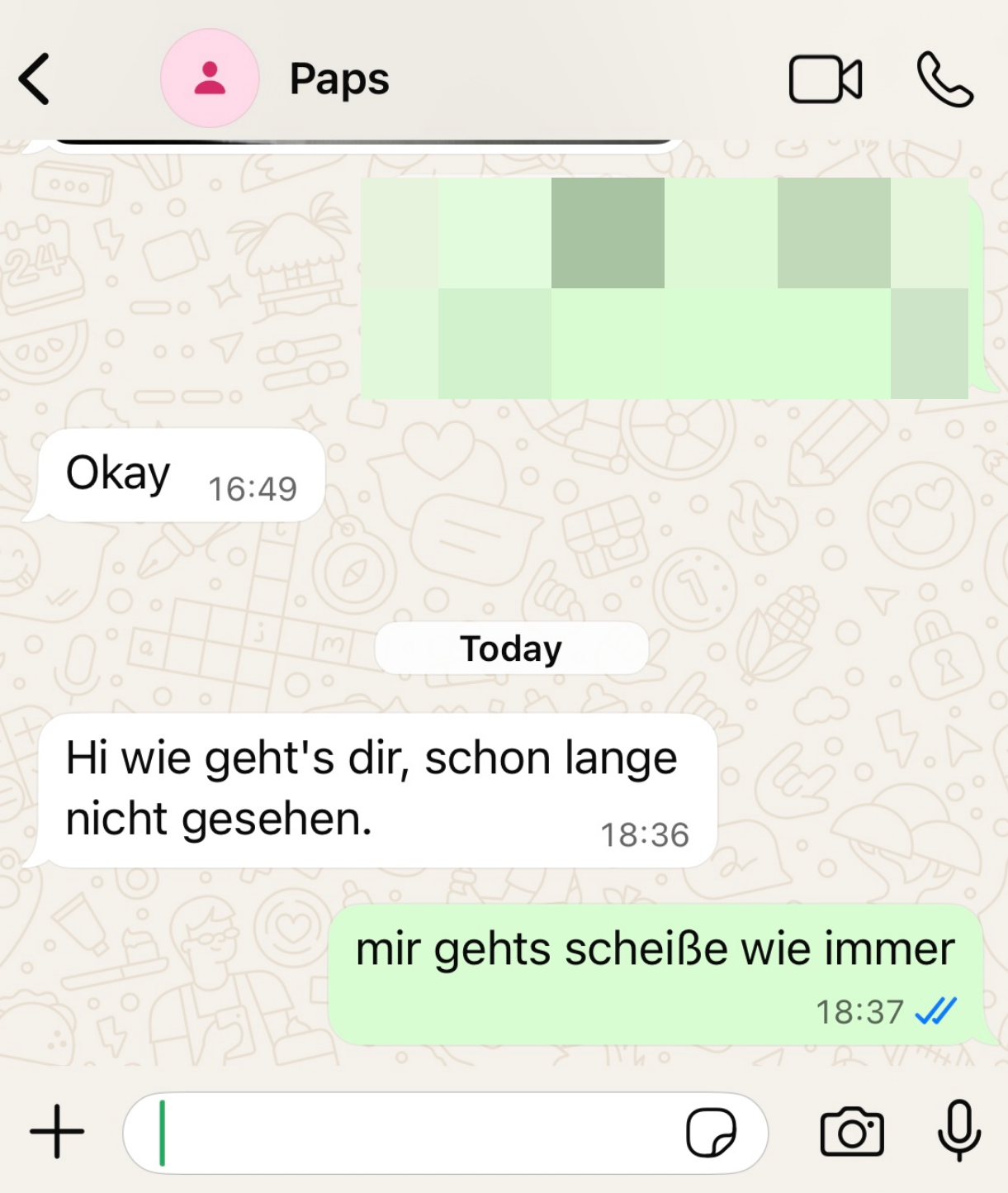 >>219577489>der zeigt eig keine emotionenwürde das helfen? entweder man akzeptierts und gibt keinen fick oder msn fühlt sich berechtigterweise machtlos. aus der sicht kann man schon sagen, dass die erste option für alle beteiligten die bessere ist>wie gehst du damit um?wenn so eine frage kommt meist einfach "ok". nur selten mal ausbruch in richtung von "was denkt denn ihr">biste ab und zu dort und sagst hallo?vielleicht 1 mal im monat
