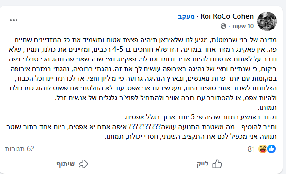 הבנתי למה כול המסעדות יקרות בארץ