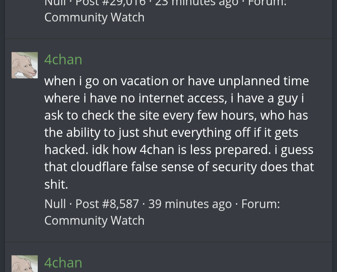 >>219589603grim times, had to flee to 8kun which is a total shithole. I also feel as if altchans are self-defeating because they're much smaller and everyone there is so frequent that they're all regulars, no one is effectively anonymous.
