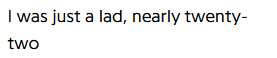 >>219596312fast biten som citerades va "jag var bara en pojk, nästan tjugotvå"